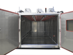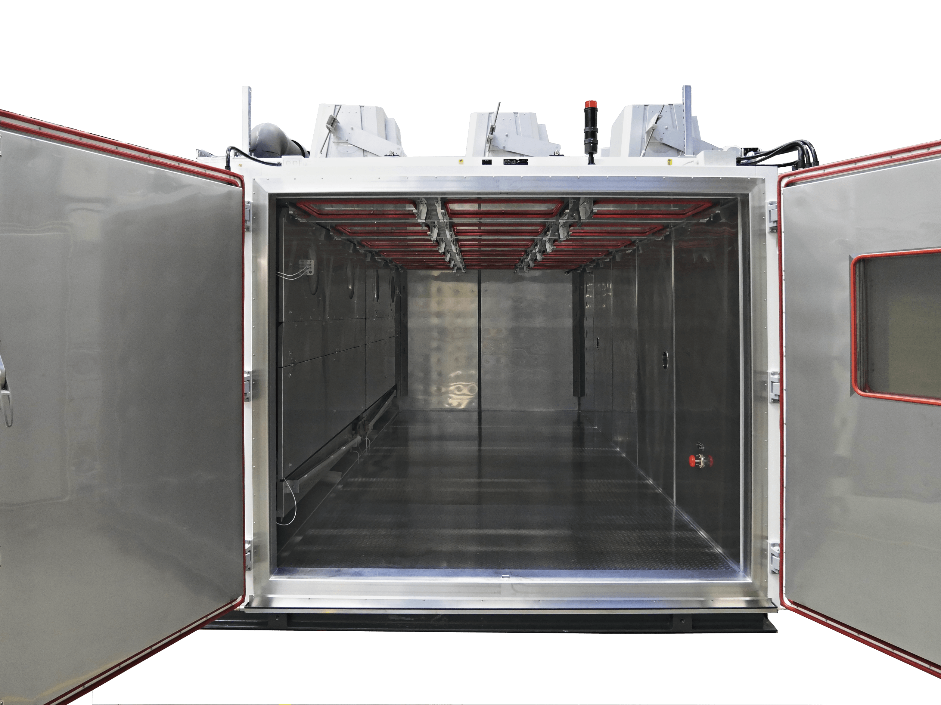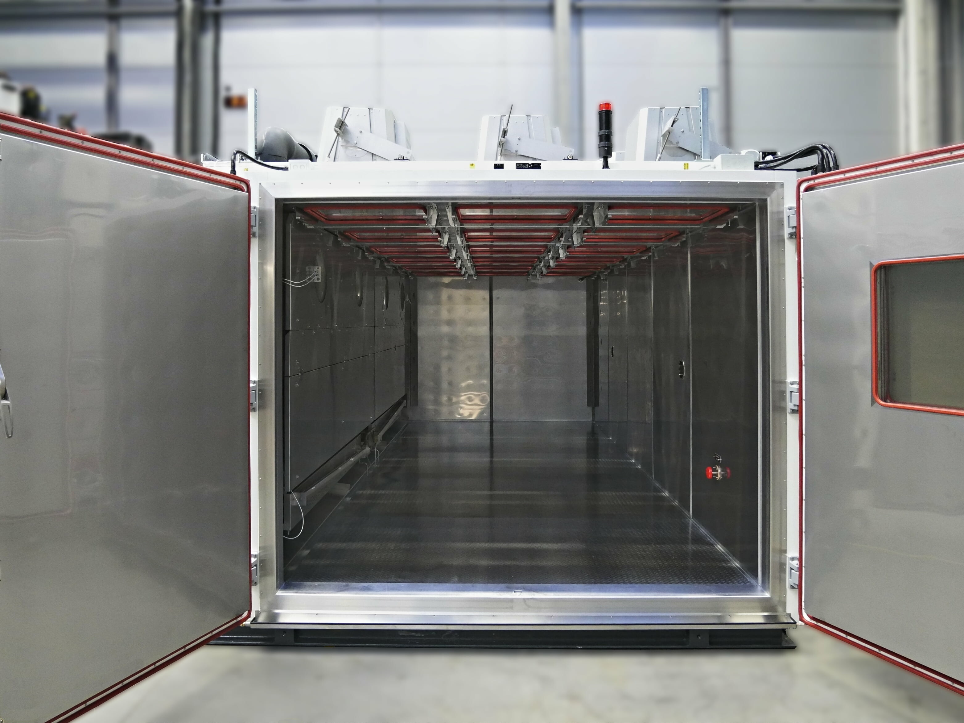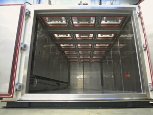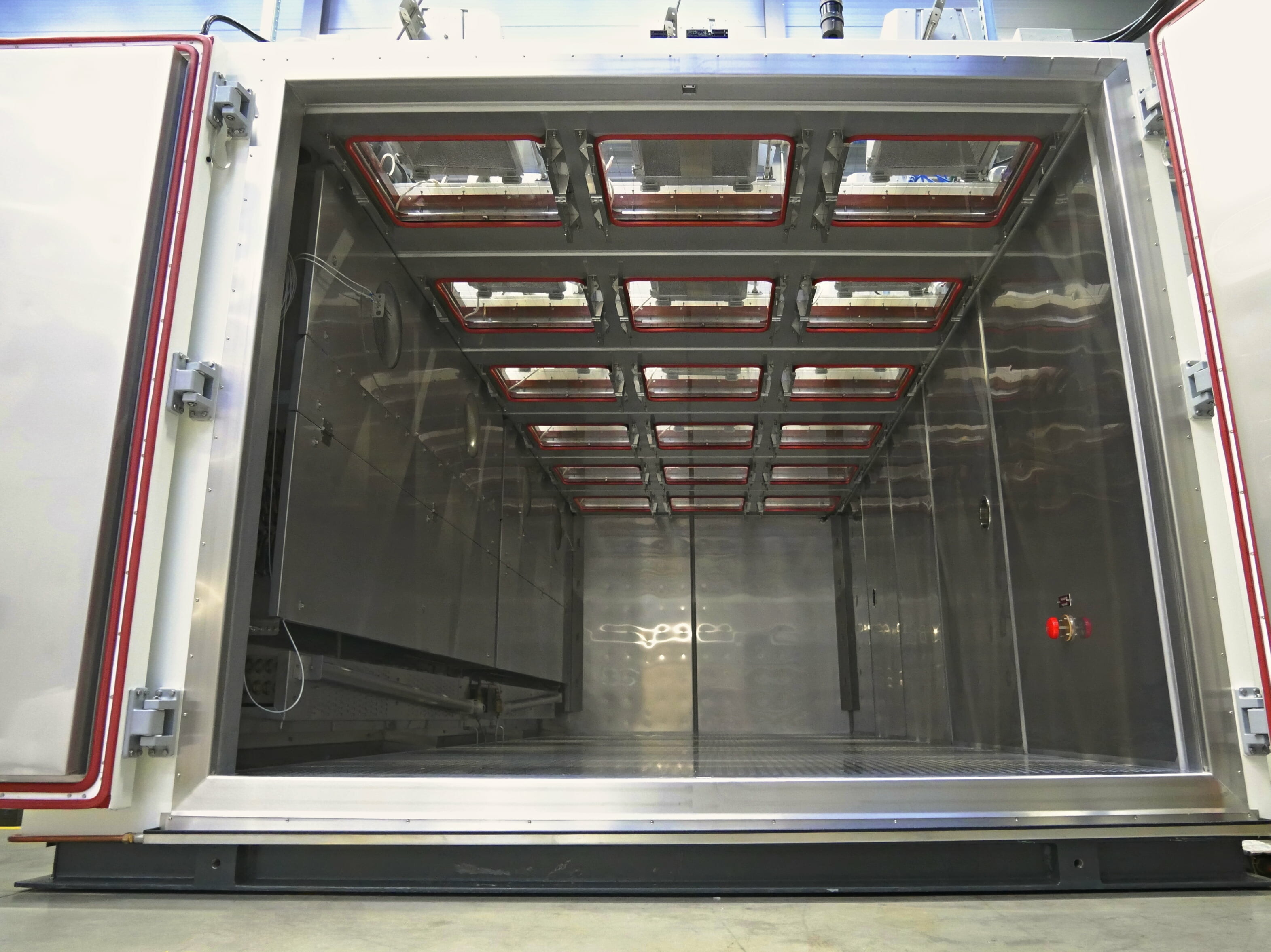 Thanks to their sophisticated design and high-quality workmanship, they have excellent consistency of temperature and humidity, thus guaranteeing correct and reliable results. SunEvent solar climate chambers with simulated solar radiation allow testing according to DIN 75220 and thus accelerate the signs of aging of materials. These signs include, for example, loss of color, strength or shape of the material. We also offer users tailor-made solutions according to specific requirements. For example, in the form of large-area (Walk-In and Drive-In) chambers. Another special design is chambers with mobile frames for special applications in various industries.