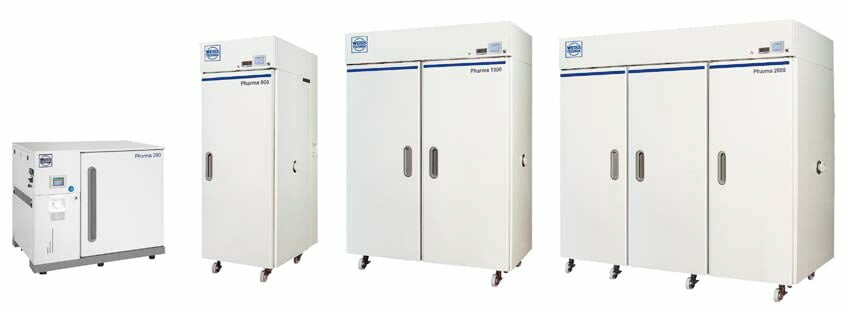 Pharma type climate chambers are manufactured in standard cabinet design from 280 to 2000 liters. Chambers from our LabEvent product line with volumes from 34 liters to 150 liters can also be used for similar purposes. For customers who need to test much larger volumes of material, we can install large-capacity Walk-In Pharma chambers. All types of chambers meet GMP or FDA guidelines and are governed by the ICH Q1A or Q1B standard, including the required simulation of UV radiation. Weisstechnik Pharma chambers are equipped with a patented steam humidifier to prevent the formation and spread of unwanted bacteria inside the test space.